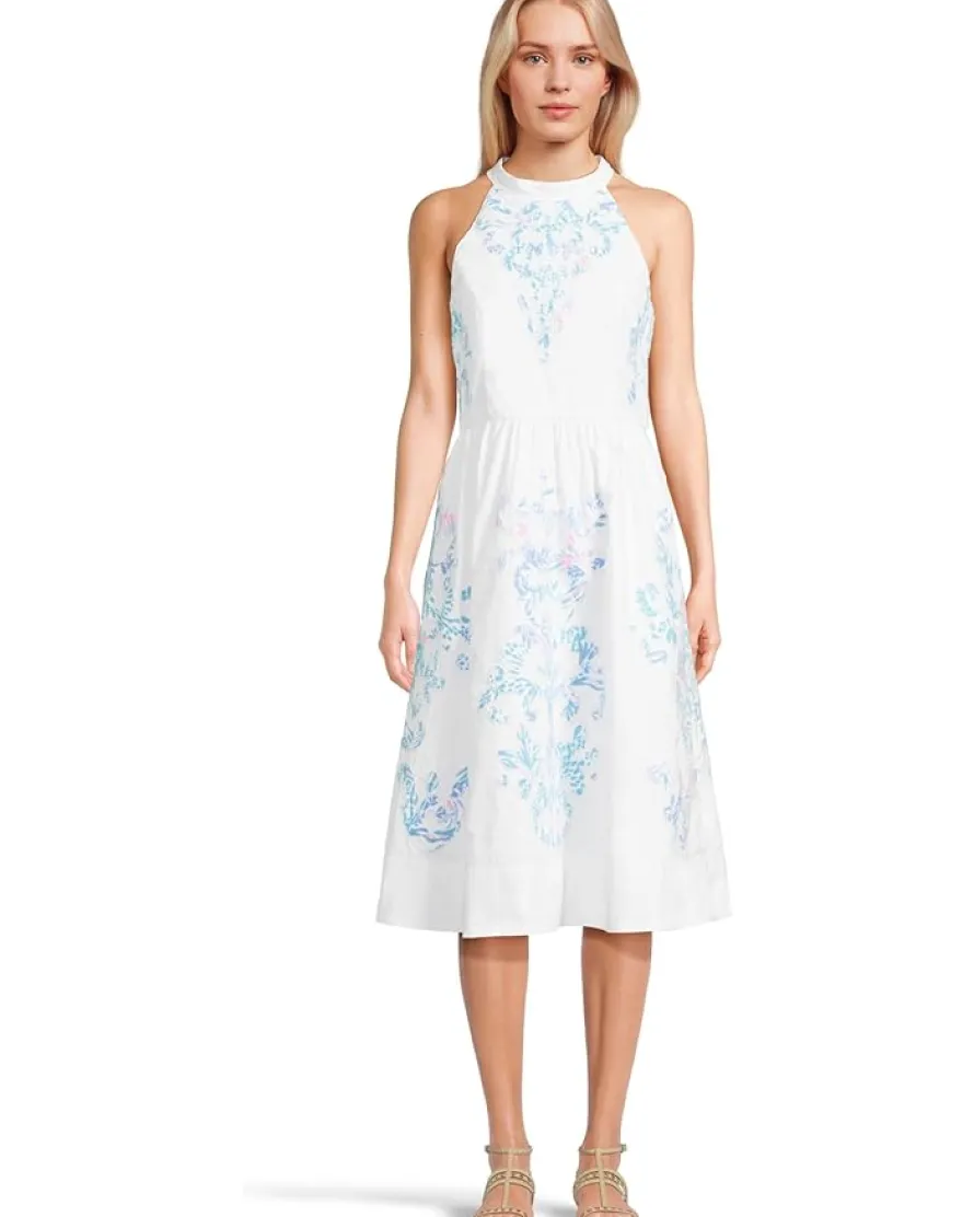 - From brunch with friends to strolling through the city, maintain your chic style effortlessly in the Lilly Pulitzer® Gianne Midi Dress. This halter midi dress features a mock collar and printed appliqúe in a sleeveless design and a back zipper closure.