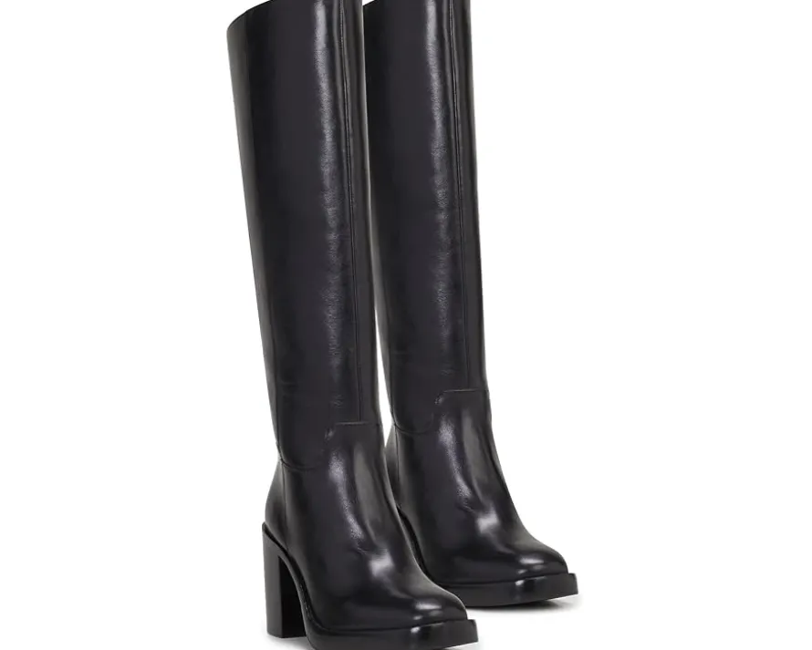 - Swing to utmost comfort and luxe style wearing the knee-high Vince Camuto® Gibi Boots. The square toe footwear features an extra wide calf width with a high-block heel and zippered side closure.