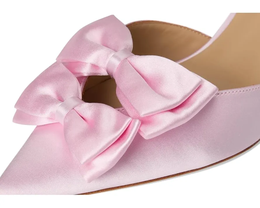 - Make a striking statement at the next special occasion wearing Badgley Mischka® Giovanna Heels. Designed with a silk upper with a pointed toe silhouette and a double bow detail, these stiletto heels elevate the style. The adjustable backstrap with a buckle closure ensures a secure fit. Plus, the breathable leather lining and leather insole add comfort to your feet.
