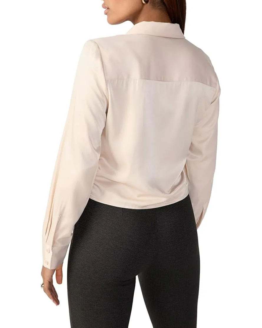 - Keep your style game versatile by donning the Sanctuary™ Girlfriend Tie Shirt with formal trousers or your favorite pair of denim jeans that accentuate its chic double-buttoned cuffs and fabric tie hem.