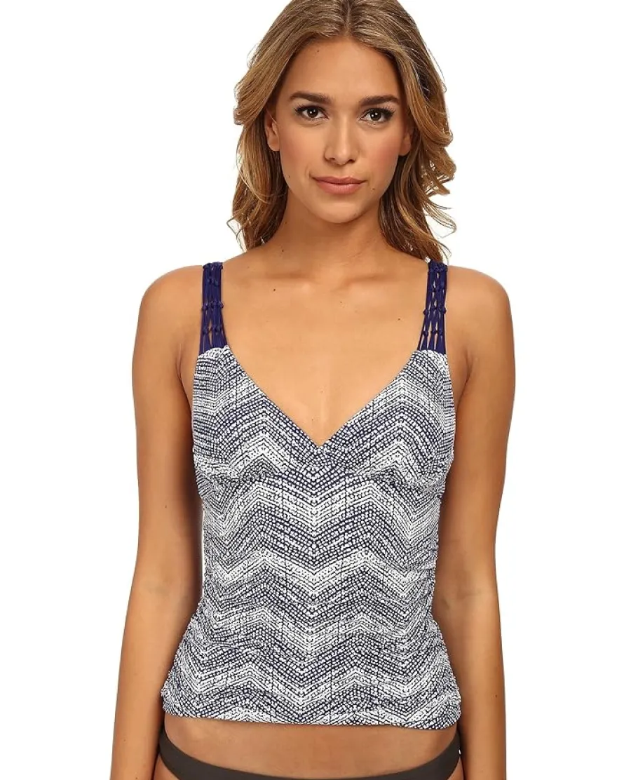 - Glamorous triangle tankini flaunts a gorgeous allover patter with macrame shoulder straps.