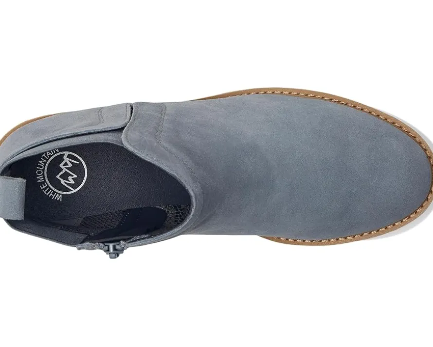 - Create the perfect fashion statement wearing White Mountain® Glassie Boots, a versatile wardrobe staple for everyday use. The classic silhouette bridges the gap between formal and casual wear. The pull-on style, ankle-high boots are crafted with a leather uppper with elastic back gores, fabric lining, and foam insole. Plus, the block heel detail elevates the look and the ankle pull tab allows donning & doffing. The synthetic rubber lug outsole and easy slip-on design provide both comfort and ease. These boots will add a touch of refined charm to any outfit.
