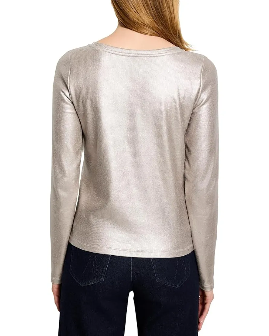 - Slip into sleek sophistication with thd fitted NIC+ZOE™ Glazed Rib Boat Neck Tee, crafted from a soft yet structured midweight rib that hugs your shape in all the right places. Designed with long sleeves, a boat neckline, and a straight hem with hip-grazing length, it’s an elevated essential with everyday ease. Subtle glazing woven into the fabric catches the light for a hint of shine-perfect for adding polish to your denim or dressing up a tailored look. This pull-on style tee is a modern staple that blends comfort, confidence, and just the right amount of shimmer.