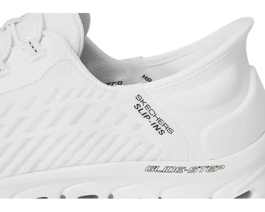 - Make every step a breeze wearing SKECHERS® Glide Step Tranquility Hands Free Slip-Ins! These slip-on shoes feature an engineered mono-mesh upper with fixed stretchable laces for a snug and secure fit. The Skechers Air-Cooled Memory Foam® cushioned comfort insole provides unrivaled support and cushioning, while the Exclusive Heel Pillow™ ensures your foot stays in place with every stride. Walk with ease and comfort with the Glide-Step® geometric midsole, designed to enhance your natural momentum.