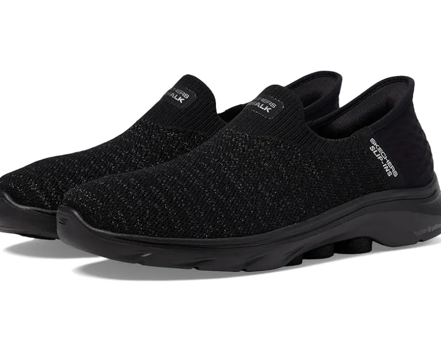 - Accentuate a tough performance on the field wearing SKECHERS® Performance Go Walk 7 Springtime Hands Free Slip-Ins that are crafed with stretch knit upper for a custom-like fit and high-rebound ultra-lightweight hyper pillar technology for added support. The sneakers feature a round toe shape with signature branding on the upper.