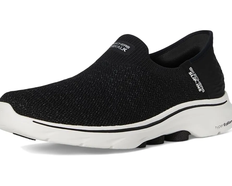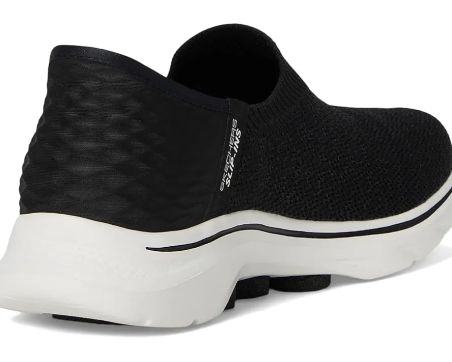 - Accentuate a tough performance on the field wearing SKECHERS® Performance Go Walk 7 Springtime Hands Free Slip-Ins that are crafed with stretch knit upper for a custom-like fit and high-rebound ultra-lightweight hyper pillar technology for added support. The sneakers feature a round toe shape with signature branding on the upper.