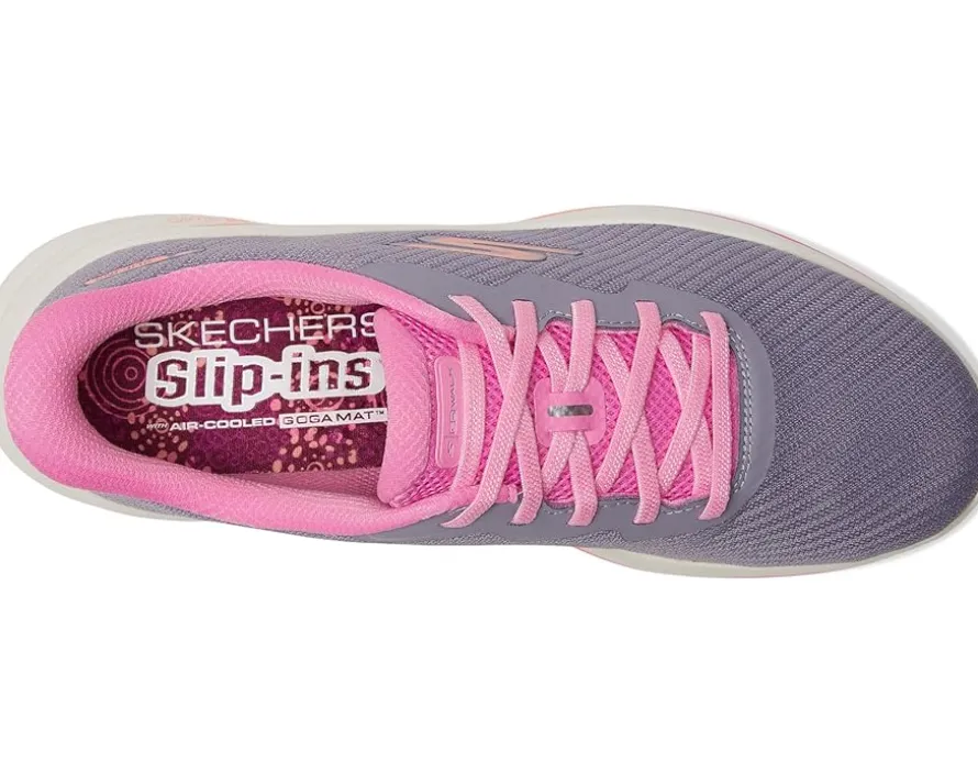 - Walk in easy-wearing comfort with SKECHERS Performance Go Walk 8 Nadia Hands Free Slip-Ins. Designed with exclusive Heel Pillow, this hands-free walking slip-on features an athletic mesh upper with bungee laces, Skechers Air-Cooled Goga Mat insole, lightweight ULTRA GO cushioning, and high-rebound Hyper Pillars for added support. It comes with round toe, and durable dual-density traction outsole for stability.
