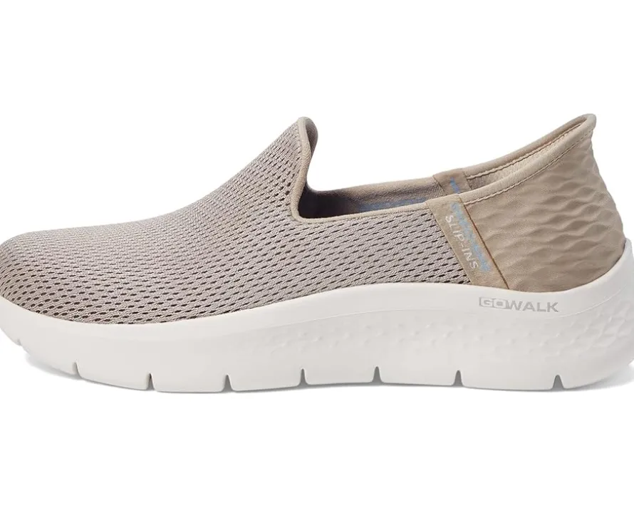 - Step-in to convenient walking comfort and cushioning wearing Skechers Hands Free Slip-ins® GO WALK® Flex – Relish. This laceless design features a breathable athletic mesh upper, our exclusive Heel Pillow™, a Skechers Air-Cooled Memory Foam® insole, lightweight ULTRA GO® cushioning and Flex Pillars™ for added support.