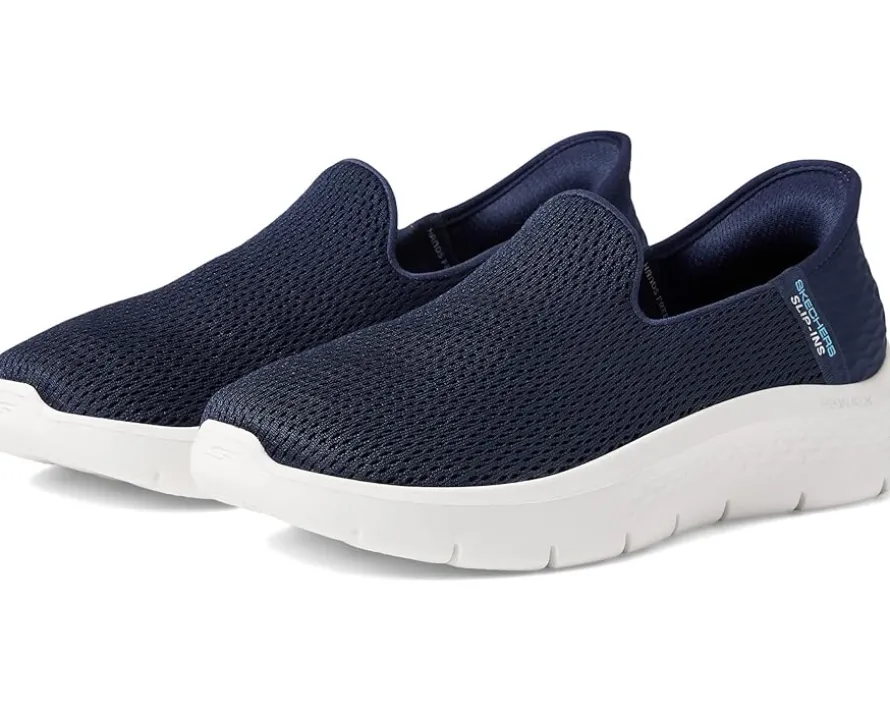 - Step-in to convenient walking comfort and cushioning wearing Skechers Hands Free Slip-ins® GO WALK® Flex – Relish. This laceless design features a breathable athletic mesh upper, our exclusive Heel Pillow™, a Skechers Air-Cooled Memory Foam® insole, lightweight ULTRA GO® cushioning and Flex Pillars™ for added support.
