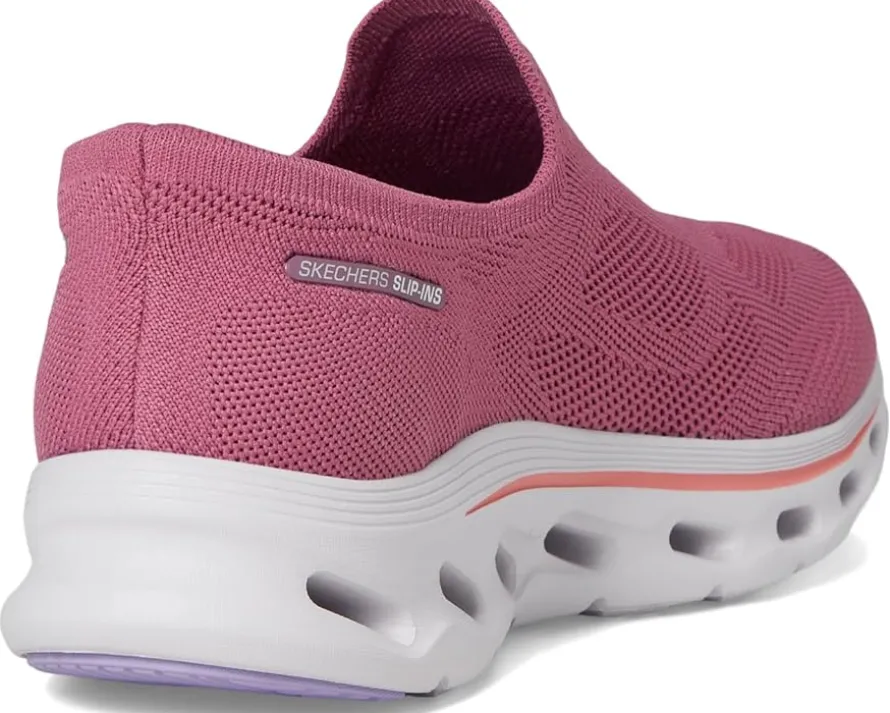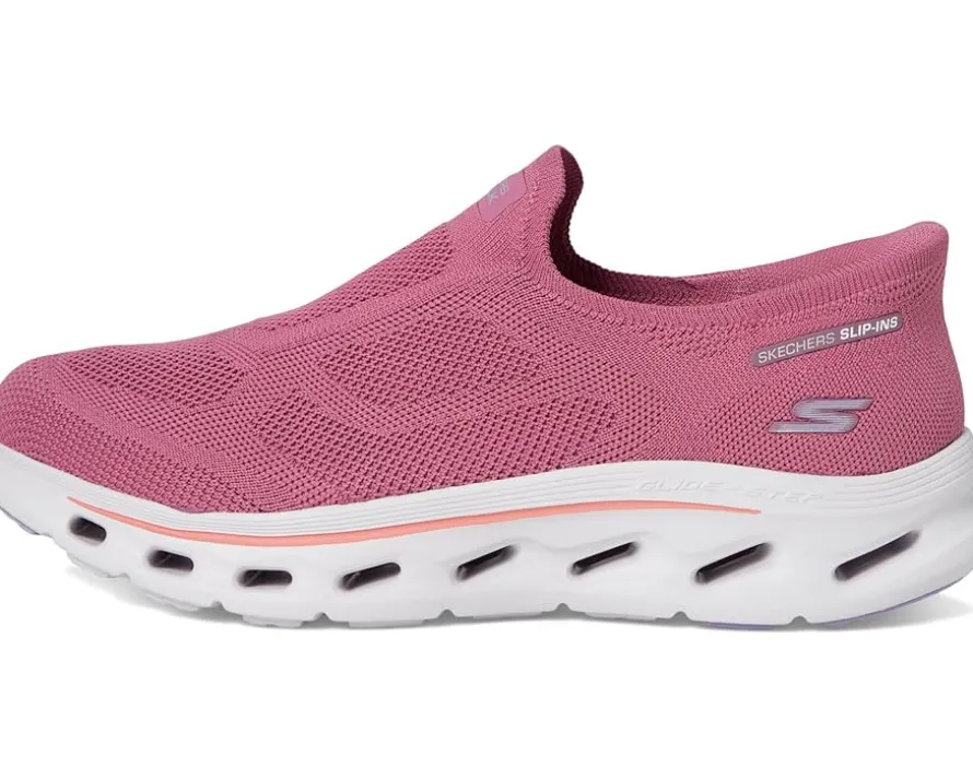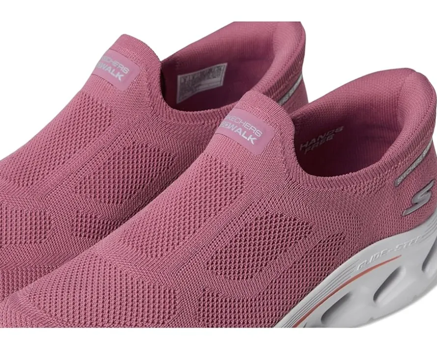 - Step-in to convenient walking comfort and cushioning wearing SKECHERS® Performance Go Walk Glide Step 2.0 Annette Hands Free Slip-Ins. Designed with exclusive heel pillow, this sporty style features a soft engineered knit upper, skechers air-cooled goga mat insole, and a lightweight ultra go cushioned glide-step midsole. It comes with round toe, and brand detailing on the tongue, heel counter, and footbed.
