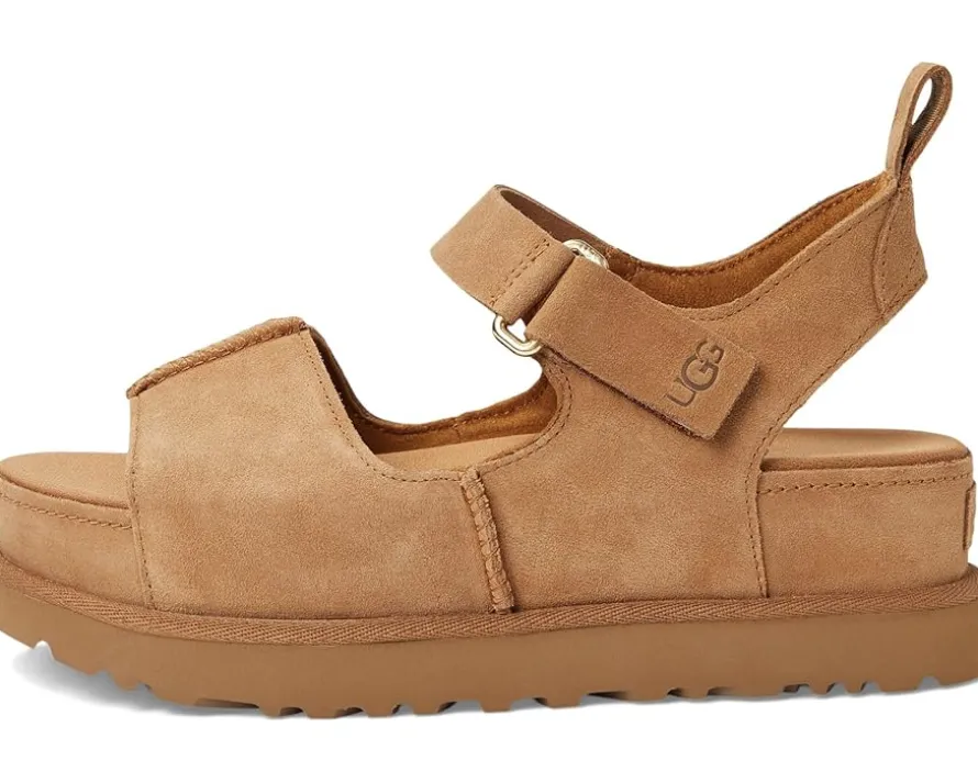 - The type of sandal that makes you say, “we can totally just walk there!” The Goldenstar Hi is the taller sibling to the signature Goldenstar sandal, bringing the same effortless shape to new heights. Pick your outfits and your destinations carefully, because this is an elevated sandal for an elevated moment. This platform is both luxe and comfy, pairing a breathable sockliner with a cushy contoured footbed. Crafted with a soft, suede upper and iconic UGG® details, you’ll get the same effortless wearability of the Classic Boot, but styled for sunshine.