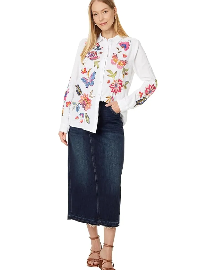 - Don’t be dull at your next event, elevate your ensemble with the Johnny Was® Gracey Linen Oversized Shirt. It features long sleeves with button detailing on the cuffs, allover iconic embroidered floral work, and shirttail hemline.