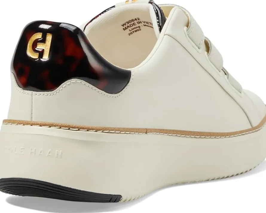 - Experience the ultimate in comfort and style wearing the Cole Haan® GrandPro Topspin Triple Strap Sneakers. Featuring premium leather upper and soft textile lining, these sneakers exude sophistication while providing a snug fit. The EVA insole and molded heel counter deliver superior comfort, while the medial ventilation ensures breathability throughout the day. With traditional Sacchetto construction and a removable footbed, you can easily adjust the fit for optimal comfort. The single-density IP-injected molded EVA midsole and rubber welt offer durable cushioning, making these sneakers a reliable choice for any occasion.