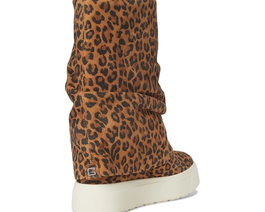 - Meet the must-have style of the season, the GUESS® Guinna boots. Where a sneaker meets a boot, the foldover slouchy silhouette is great for an everyday put-together look. The denim upper of these boots features a pull-on style. These ankle-high boots are made of a cushioned insole and fabric lining, making them comfortable to wear for long hours.