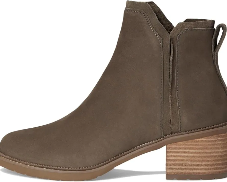- Unique and exquisite, the TOMS® Hailey is a masterpiece on display. Crafted from water resistant leather upper, polyester lining, and polyurethane insole, this pair of boots features round toe, pull-on construction, back pull tab, water resistant suede underlay details, and casual block heel boot with mini lugged sole.