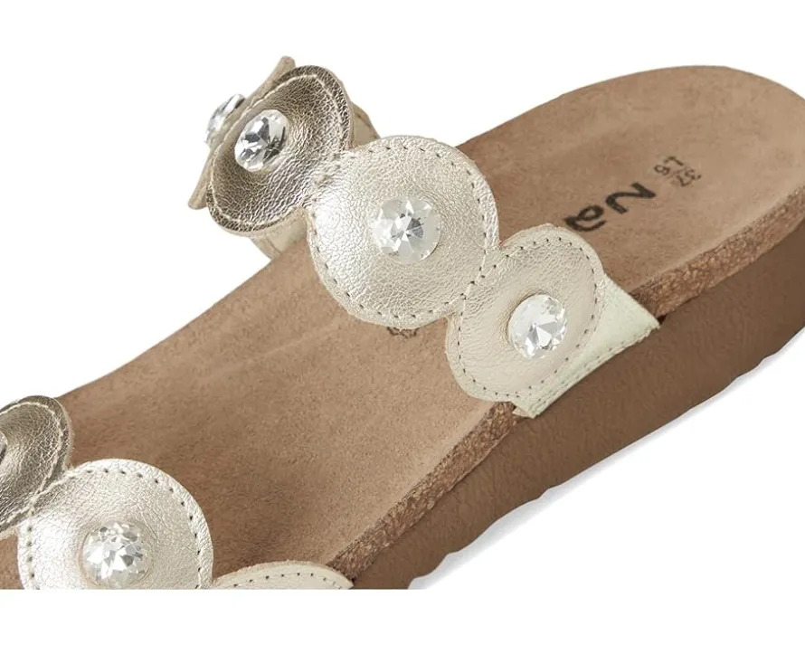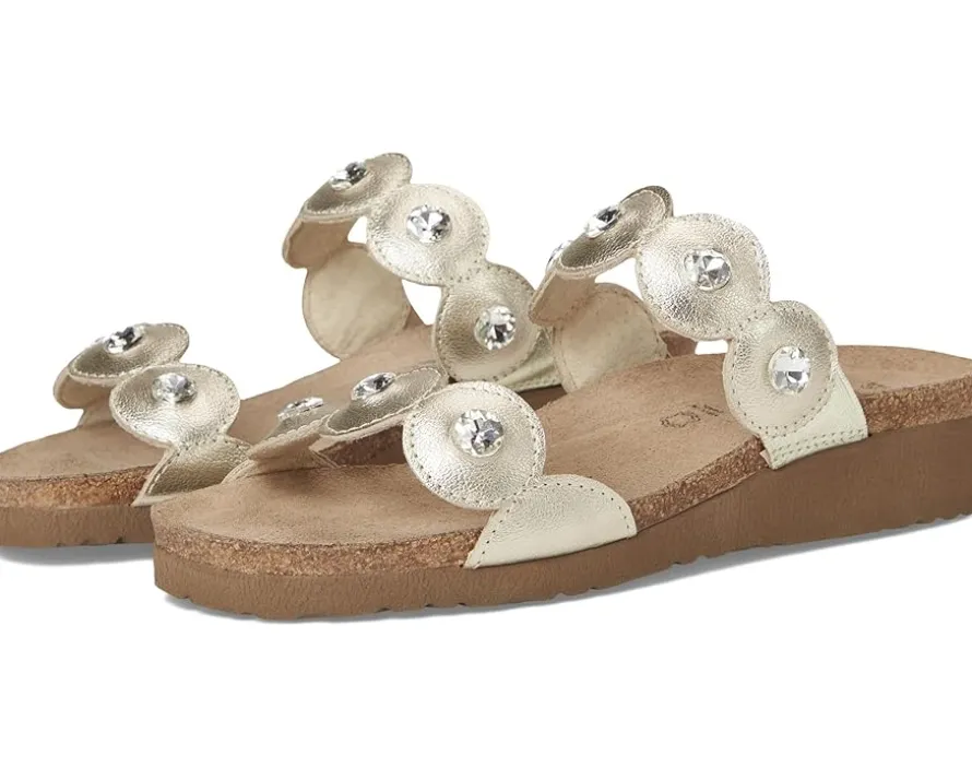 - Meet Naot® Hailey – your perfect blend of comfort and glamor. With its sleek design featuring gore and dazzling rhinestone accents, this slide adds a touch of sparkle to any outfit. The easy slip-on design ensures convenience without compromising on style, making Hailey the ideal choice for any occasion. Crafted with Naot’s anatomic cork and latex footbed wrapped in pampering suede and molds to the shape of your foot with wear, ensuring personalized comfort. Plus, it’s accepted by the American Podiatric Medical Association (APMA) for promoting good foot health.