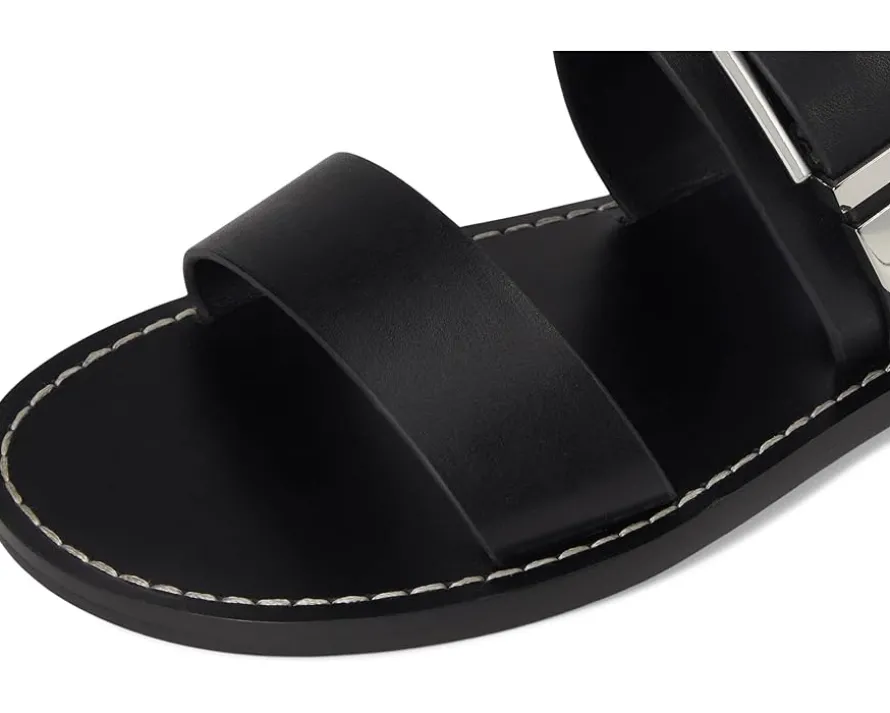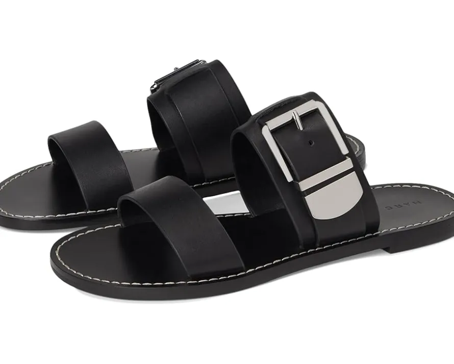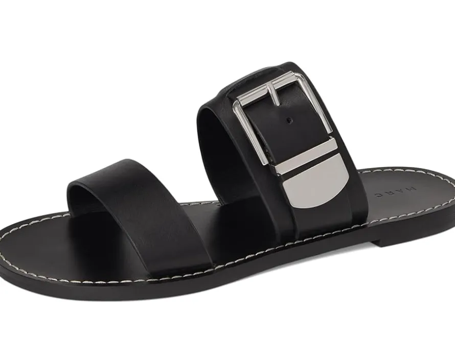 - Stay stylish in the Marc Fisher LTD™ Hallyn Sandals. The slip-on style sandals come with a two strapped leather upper, polyurethane lining, and a comfortable leather insole. The buckle closure on the sandals ensures a secure fit.
