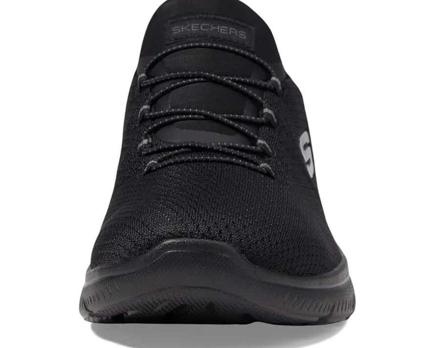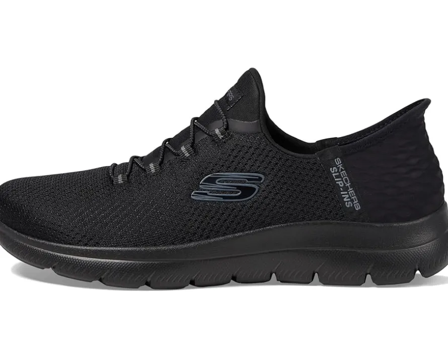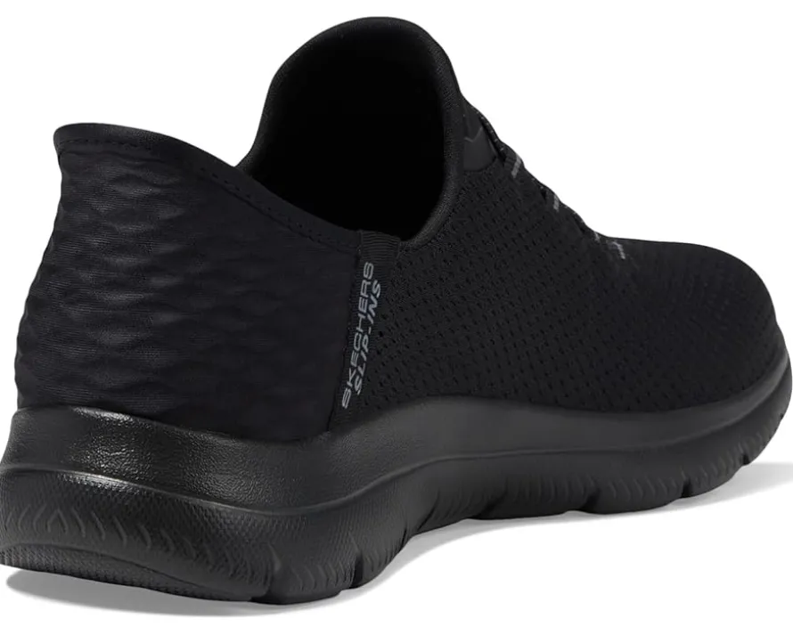 - Experience the ease of comfort and good flexibility with every step you take wearing SKECHERS® Hands Free Slip-Ins Summits Girls Night Sneakers that are designed with the exclusive heel pillow™ and a heathered jersey knit upper with fixed stretch laces for adjustability. The slip-on style sneakers come with a cushioned Skechers air-cooled memory foam® comfort insole and features a low-top design withthe classic round toe shape.
