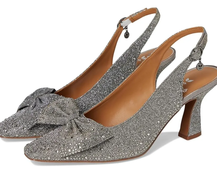 - This year-round women’s fabric/rhinestones square toe pump has a memory foam+latex insole and synthetic lining. This style also features a buckle closure on a 2.75 inch heel.