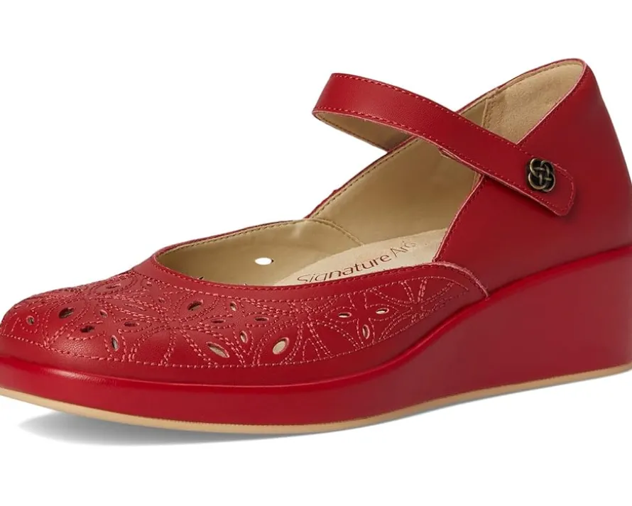 - The Alegria® Hayes elevates your modern look. Featuring premium leather uppers and an adjustable strap with a decorative button closure, this shoe ensures a secure and custom fit. Built on the advanced Tri-Form wedge outsole from Alegria, the Hayes delivers exceptional support, stability, and shock absorption for all-day comfort. The removable dual-density Signature Arch footbed promotes foot health, making this versatile style perfect for work or casual outings. Featuring adjustable strap with decorative button closure, and protective heel cup for added stability.