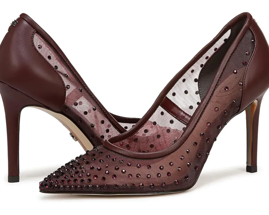- Move with timeless flair wearing the Sam Edelman® Hazel Mesh Pumps. The pull-on footwear features breathable mesh upper with crystal detailing and stiletto heel.