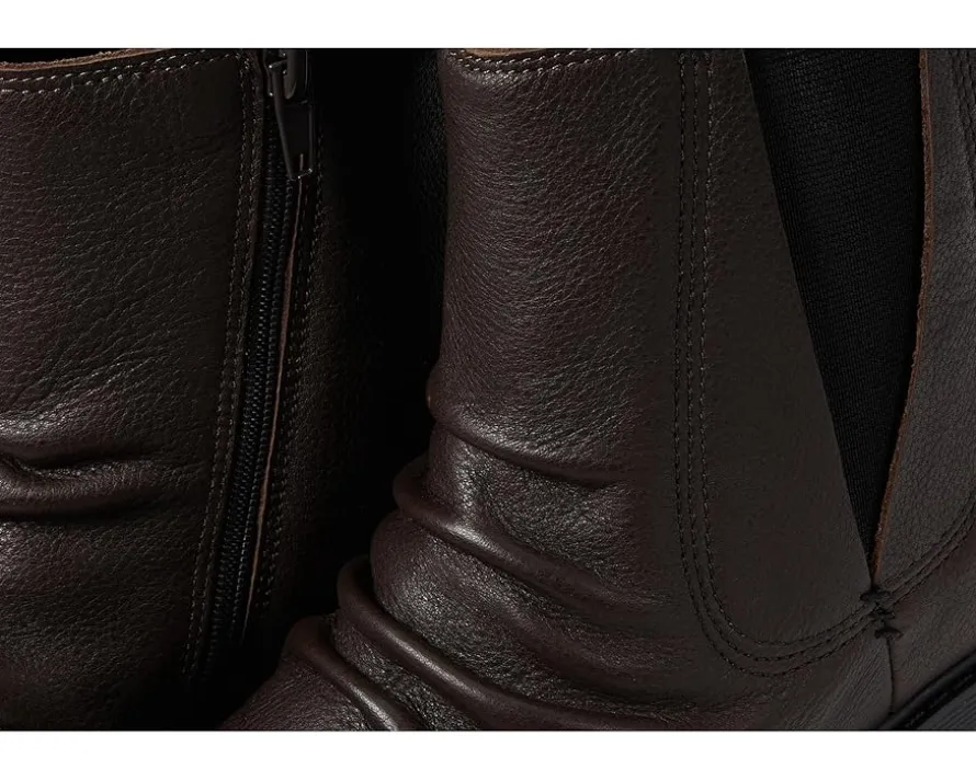 - Step out in style every day by wearing Clarks™ Hearth Rose boots. The leather upper with fabric lining makes it stylish from the outside and comfortable from the inside. The round-toe boots have a wrinkled effect for styling. The calf-high shaft, zip closure, and heel pull tabs make it super convenient to put on.