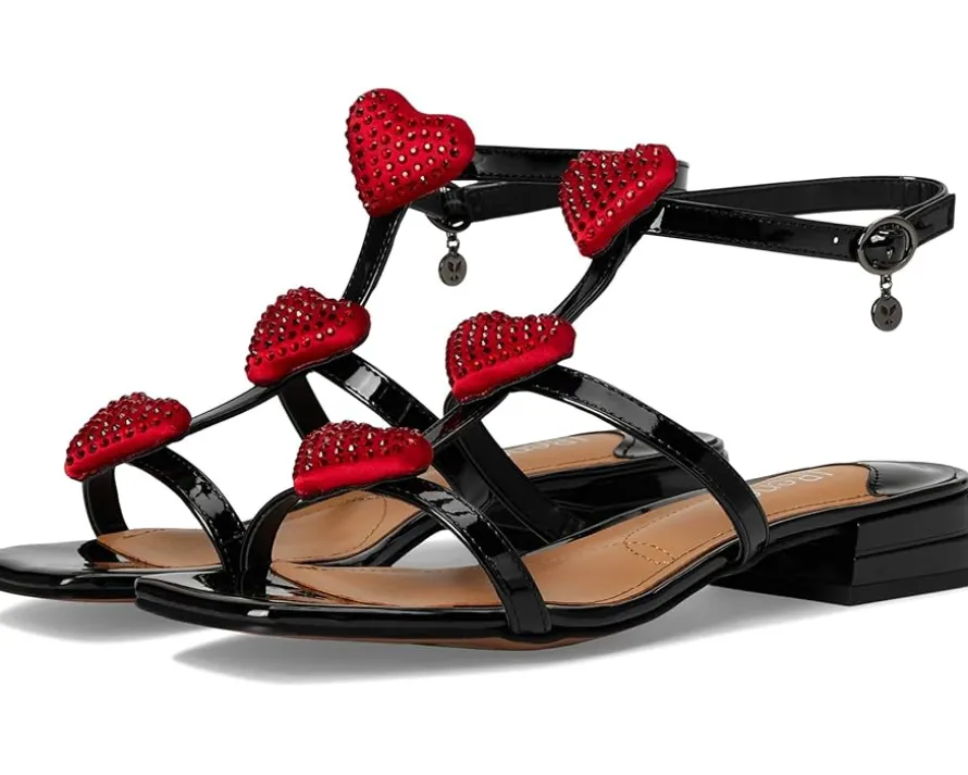 - The J. Renee® Heartly sandals are square-toe-shaped sandals that have a memory foam and latex insole and synthetic lining for all-day comfort. These heeled sandals feature a polyurethane upper that is styled with embellished heart detail for an eye-catching twist. The ankle strap with an adjustable buckle closure ensures a perfect fit. Match your different outfits and styles with these fashionable sandals.