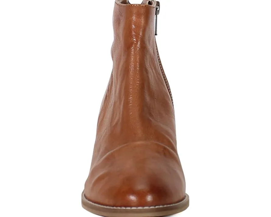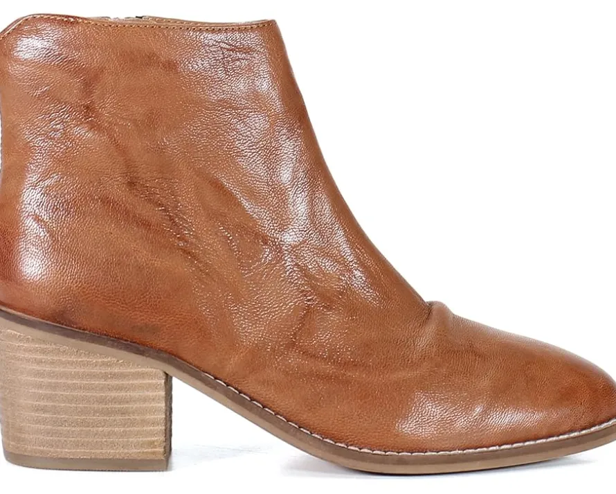 - Ankle-high boots featuring leather upper with a unique unrefined finish and a textured warm undertone.