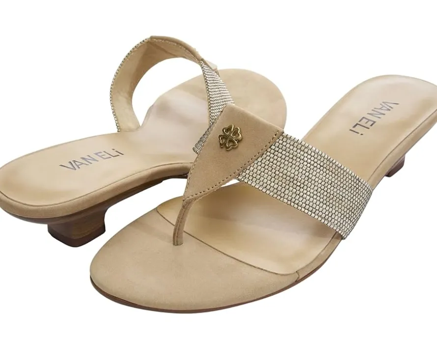 - Upgrade your footwear collection by wearing the Vaneli® Henka. The slip-on style footwear has an open-round toe design, toe-post silhouette, kitten heels, and intricate detailing on the upper for a statement look. The lightweight footwear has a cork upper, leather lining, and faux leather insole that provides a cozy, gentle hug for your feet, making them feel like they’re walking on clouds