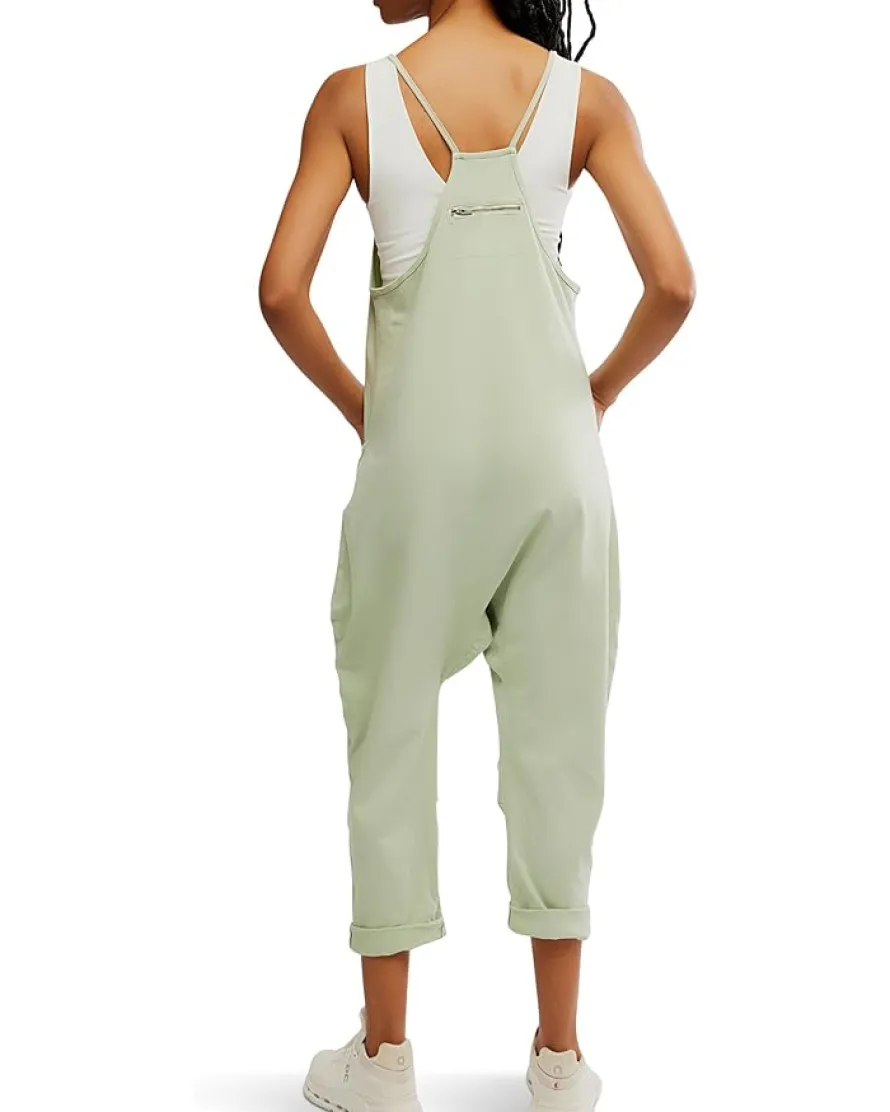 - Embrace your free spirit with the FP Movement™ Hot Shot Onesie! This trendy piece features a sleeveless, round neck, racerback silhouette, oversized front patch pockets, dropped armholes, and a back pocket with zippered detail. Soft and comfy, its slouchy, relaxed fit and dropped crotch design provide ultimate comfort, while convenient side pockets keep essentials close.
