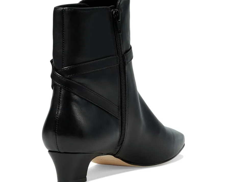 - Evoke elegance and grace with every step you take wearing the Bernardo® Houston Ankle Boots. Featuring buckled ankle strap, this snip toe pair features calf leather upper construction with ultrasuede lining and cushioning leather footbed.