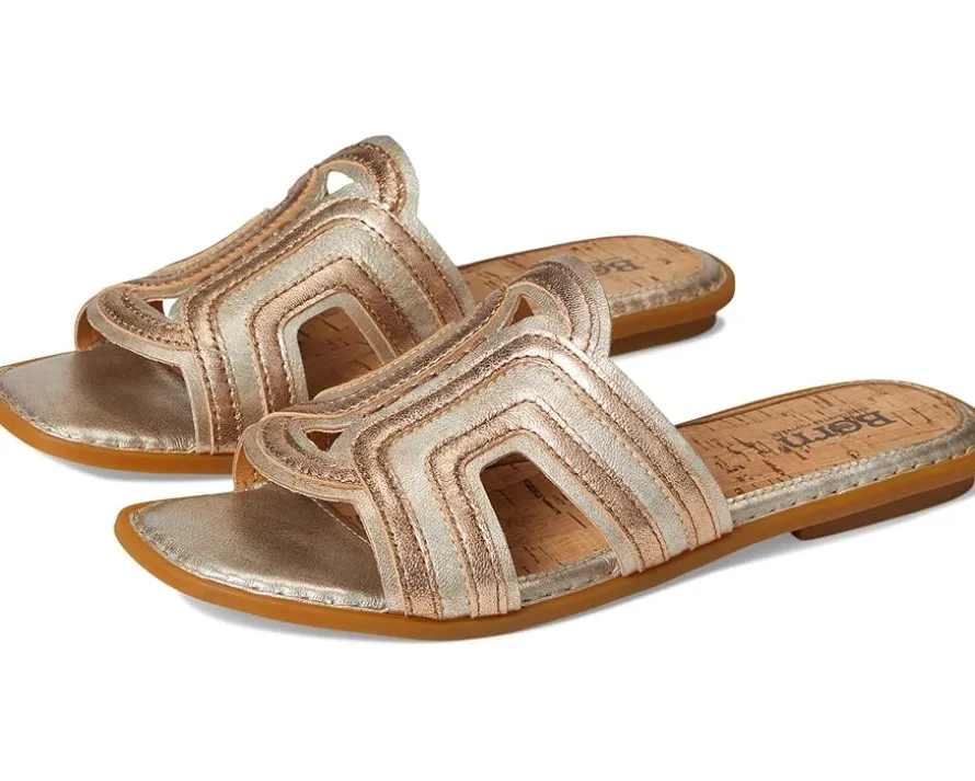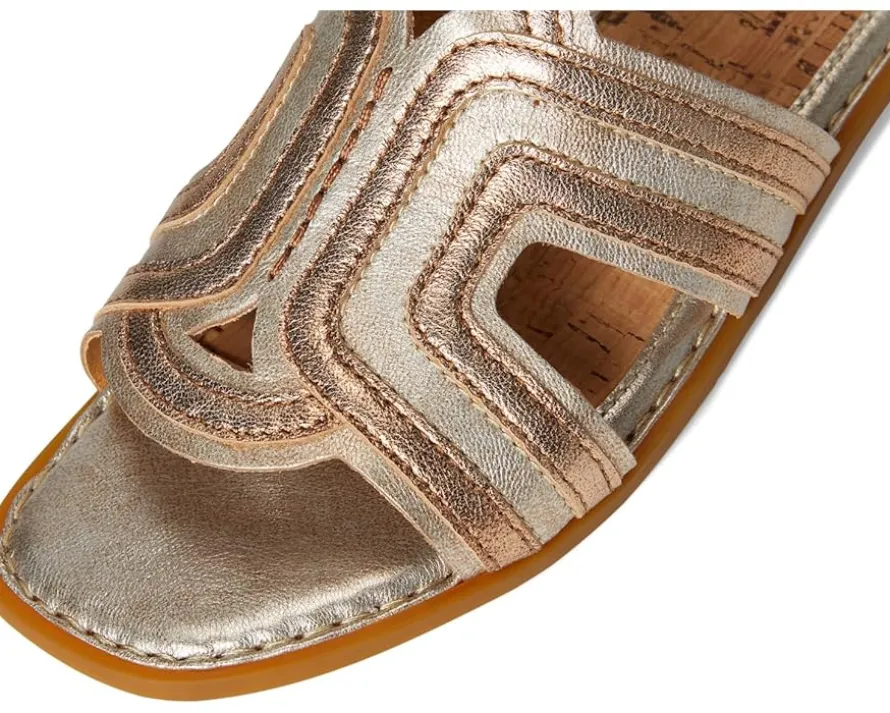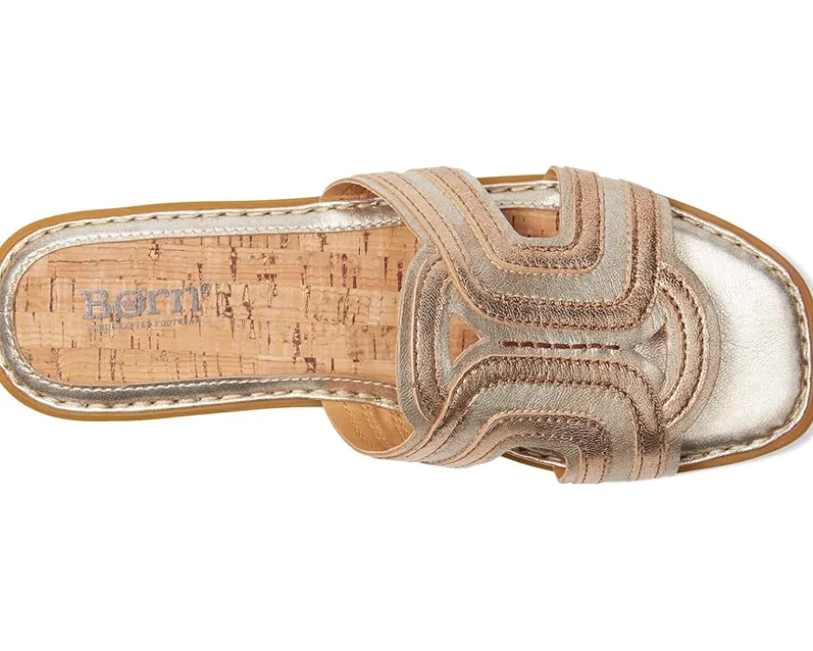 - Completed with Opanka handcrafted construction, the Børn® Hyannis slide delivers both style and durability for every occasion. Featuring a soft, hand-finished leather and cork combination or a striking metallic leather upper, it exudes elegance and quality. The breathable microfiber lining ensures lasting freshness, while the leather and cork-covered cushioned footbed, enhanced with extra foam, offers unparalleled support.