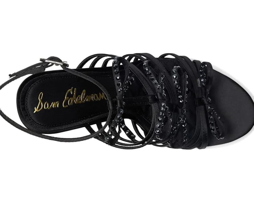 - Dare to lace up and let confidence lead the way in the Sam Edelman® Iman Strappy Sandals. Designed to turn heads, these heels feature a sleek leather upper that exudes luxe appeal, paired with a supportive PU lining and a smooth polyester insole for lasting comfort. The strappy silhouette adds a daring, lace-up effect that perfectly frames your foot, while the adjustable buckle ankle strap ensures a secure, tailored fit. Perched on a sky-high stiletto heel, the Iman is made for unforgettable entrances, whether you’re hitting the dance floor or owning the night at a chic rooftop party. The durable synthetic rubber outsole keeps your stride steady without compromising style.