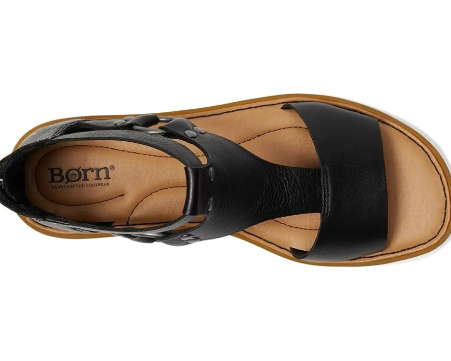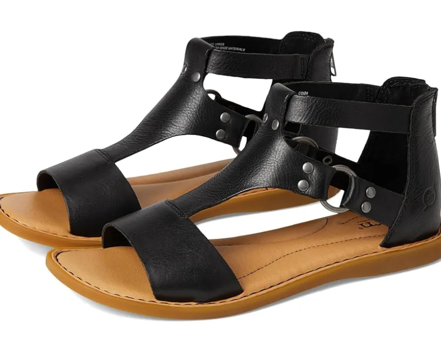 - Experience the comfort of the Born® Indi sandals designed with soft leathers and even softer linings. The soft hand-finished full-grain leather upper features a zippered back closure for easy wear. These flat sandals are designed with a cushioned microfiber-covered foam with extra foam for added comfort and a breathable soft microsuede lining. The inside Opanka handcrafted construction offers added durability.