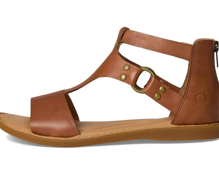 - Experience the comfort of the Born® Indi sandals designed with soft leathers and even softer linings. The soft hand-finished full-grain leather upper features a zippered back closure for easy wear. These flat sandals are designed with a cushioned microfiber-covered foam with extra foam for added comfort and a breathable soft microsuede lining. The inside Opanka handcrafted construction offers added durability.
