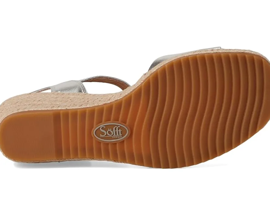- The Sofft® Inez is the perfect blend of timeless charm and all-day comfort. Crafted in one such style, this espadrille-inspired beauty is designed in soft, luxe leather, and features a two-piece construction with woven details and whipstitch accents for that handcrafted feel. The rope-wrapped wedge heel lends a laid-back, sun-kissed vibe, and a soft foam insole cushions each step. It has a handy buckle closure to ensure a secure fit and an open-toe silhouette making it a staunch warm-weather companion. Finished with a durable rubber outsole for stability, the Sofft Inez is your go-to for casual sophistication and undeniable comfort.