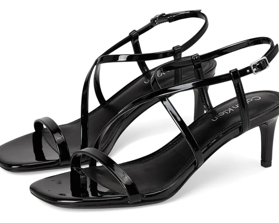 - Embrace urban elegance with a touch of comfort wearing the Calvin Klein® Ishaya Dress Sandal. This chic sandal boasts a square toe and open design, finished with a secure buckle closure. The luxurious faux leather upper pairs beautifully with the breathable, unlined interior.