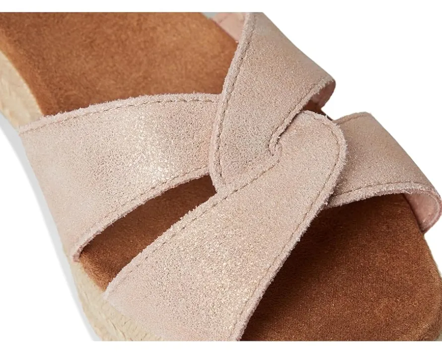 - TOMS commits 1/3 of their profits in support of grassroots good, partnering with organizations at the local level to boost mental health, increase access to opportunity, and end gun violence. The TOMS® Isla is crafted from suede upper, polyester lining, and polyurethane insole, featuring soft open square toe, interwoven strap detailing, ankle strap, buckle closure, mid-height platform heel, custom CloudBound foam insoles for all-day comfort and support, cork, and rope wrap midsole.