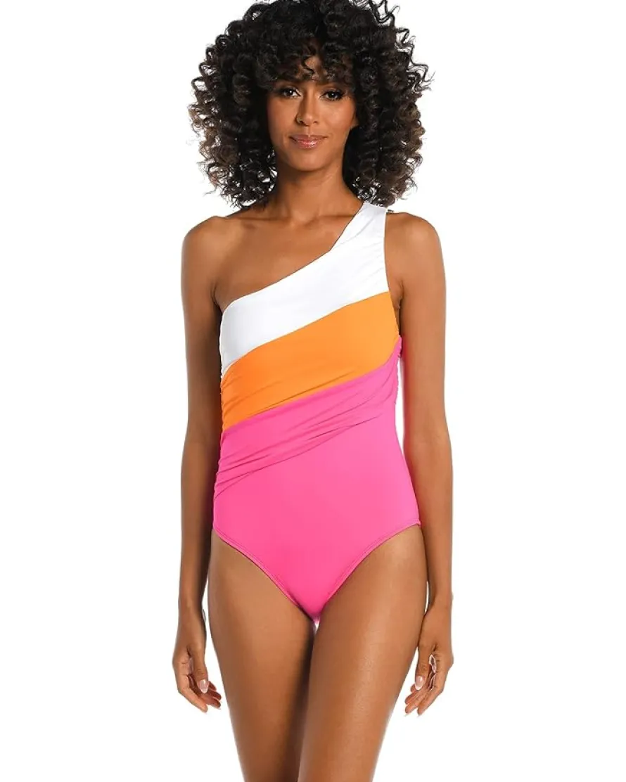 - Dazzle all day in your resort and swim like a free child donning the La Blanca® Island Goddess Shirred Color-Block One Shoulder Mio.