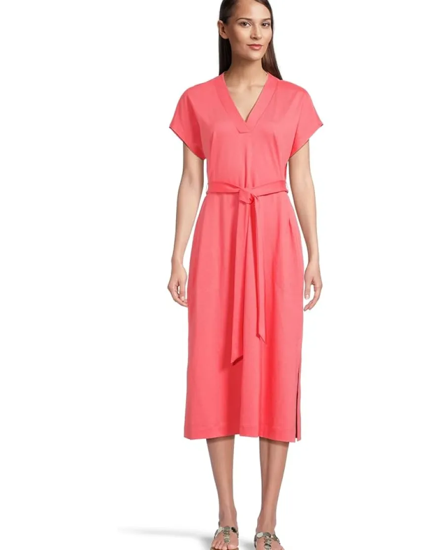 - The Tommy Bahama® Islandscape Jersey Midi Dress is a short-sleeve cotton jersey midi dress featuring an on-trend v-neckline and removable self-tie fabric belt. Its side slits offer a better range of movement. Made from cotton fabric that provides long-lasting comfort, this midi dress is a great choice for casual outings and events.