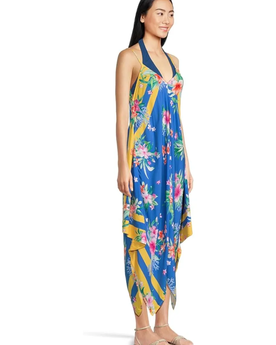 - Exude pretty vibes as you walk by the bay wearing Tommy Bahama® Isola Vita Scarf Dress. The maxi-length dress features a V-neckline, adjustable shoulder straps, an allover print, and an asymmetric hem.