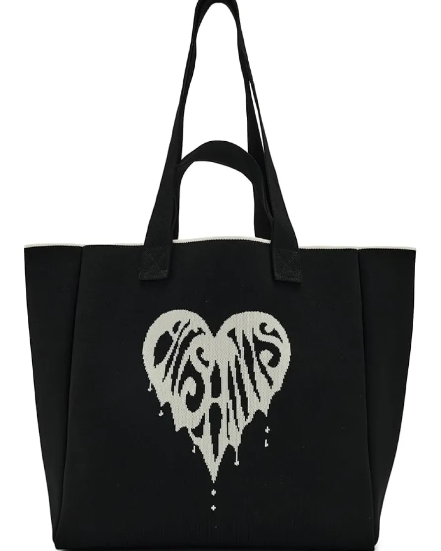 - The AllSaints™ Izzy Heart E/W Tote is a bold reinterpretation of everyday carry. Crafted from polyester, its spacious silhouette features dual straps, a large internal slip pocket, and a dripping heart graphic at the front.