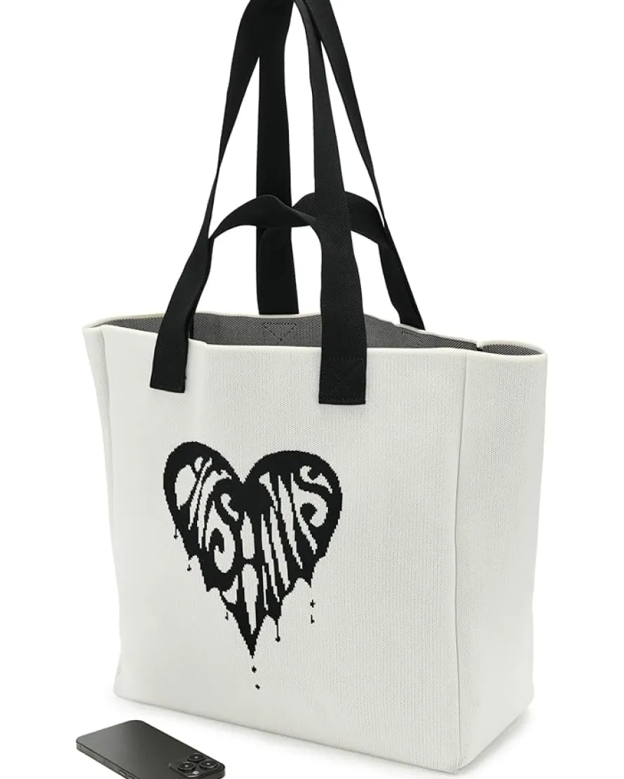 - The AllSaints™ Izzy Heart E/W Tote is a bold reinterpretation of everyday carry. Crafted from polyester, its spacious silhouette features dual straps, a large internal slip pocket, and a dripping heart graphic at the front.