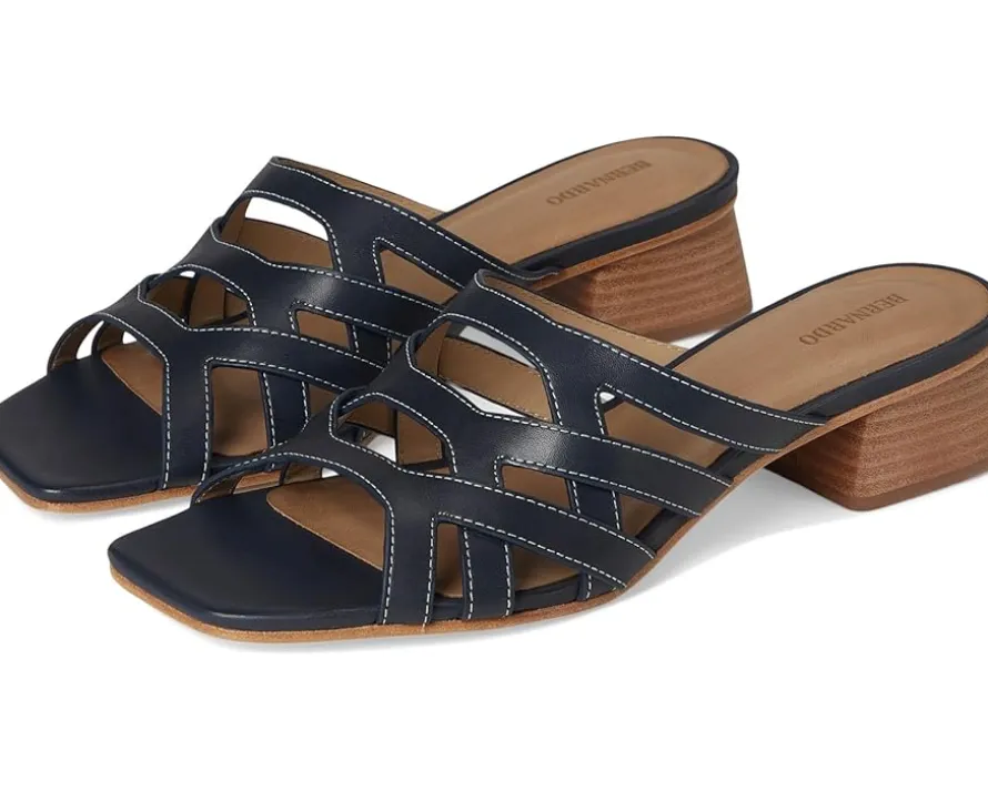 - Create space. The Bernardo® Jacin slip-on heeled sandal cultivates ease with its simply elegant leather upper and work-play stacked heel, which invite you to both embrace the everyday and explore new horizons.