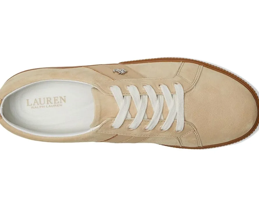 - Make a fashion statement choosing the Lauren Ralph Lauren® Janson II sneakers. Featuring sleek leather upper, these sneakers are both versatile and stylish. The textile and synthetic lining, padded insole, and lace-up closure ensure a secure and comfortable fit. With the signature “LRL” brass-finished logo on the quarter, these sneakers are a timeless addition to your wardrobe.