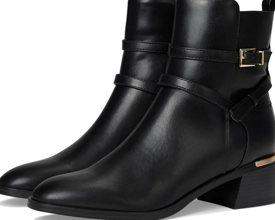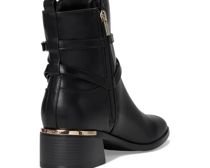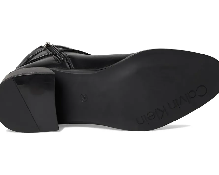 - Chic and cool, the Calvin Klein® Jansen boot will surely turn heads. It features a mid block heel, adjustable strap and sleek design. With an almond toe shape and zippered side closure, this boot is the perfect wardrobe staple.