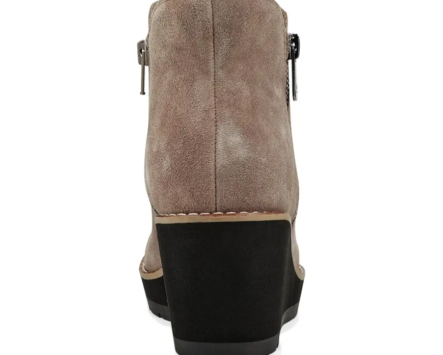 - Style your look from the ground up wearing super classy Easy Spirit® Jayda Boots. This almond toe pair has suede upper construction with wedge heels and dual zippered side closures.