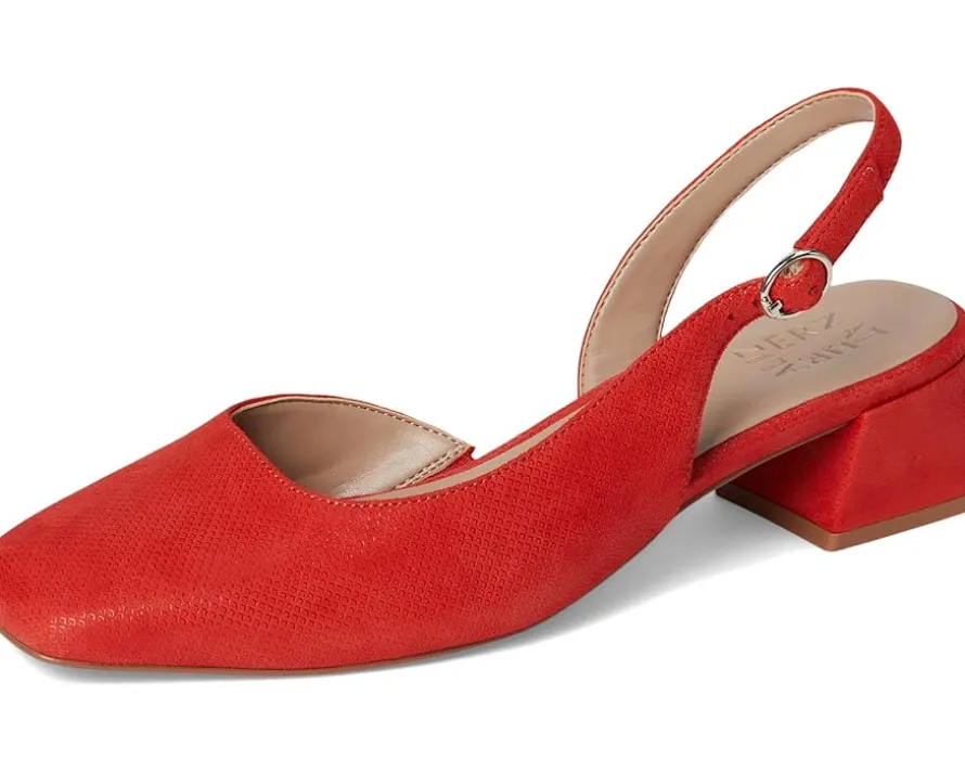 - Create a stylish look wearing the Naturalizer® Jayla sandals. Powered by REZORB™ for sneaker-level comfort, these are your new favorite slingback heels. Slipping into these low block heels always feels like a dream. Slingback dress shoes with D’Orsay side styling. It has a leather or metallic leather upper with a closed square toe design. Contour+ Comfort technology for a premium fit and all-day comfort experience.