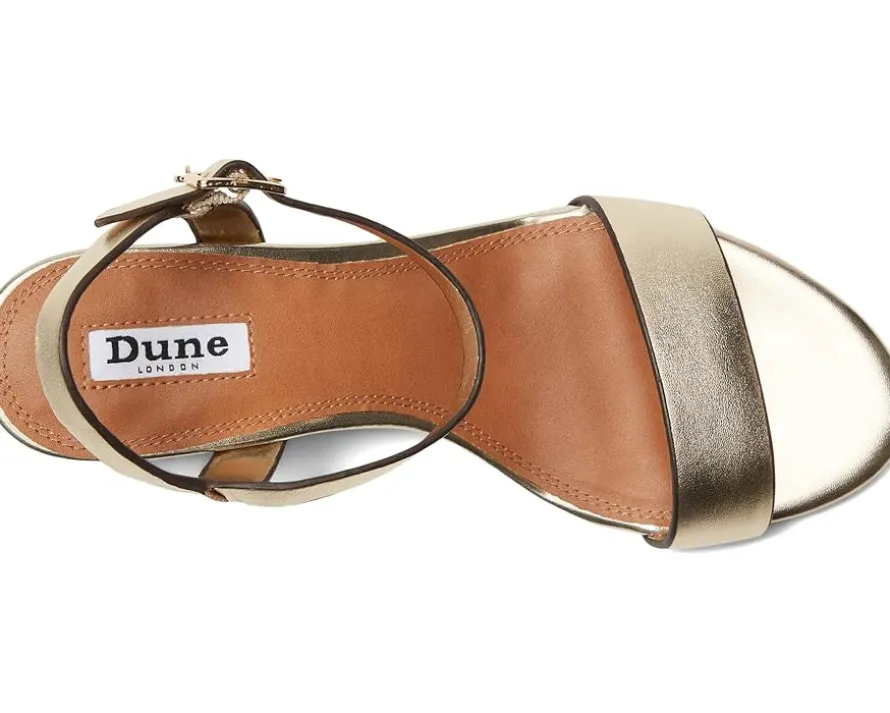 - Dune London® Jelly-where chic meets comfort in every step. Designed for warm-weather styling, these sophisticated sandals boast a premium leather upper that exudes timeless charm. The buckle ankle strap with a delicate charm detail adds a luxe touch, while the synthetic lining ensures a smooth, all-day wear experience. Elevate your stride with the veneer-wooden block heel, crafted for both style and stability. The EVA insole provides lightweight cushioning, while the synthetic rubber outsole offers durability and traction.