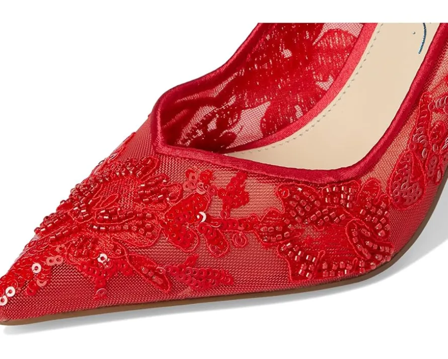 - Step into the wild and bold world of Blue™ by Betsey Johnson Jenii Heels! These pointed-toe pumps feature a mesh heel, stiletto heel, and dazzling floral print design. Add a touch of charm and sass to any outfit with these quirky and playful heels.
